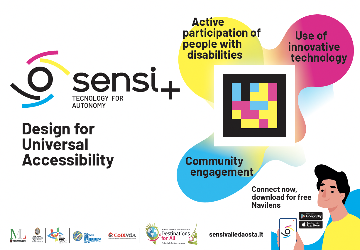 In questo prestigioso contesto è stato selezionato anche Sensi+ Tecnologia per l’autonomia, progetto attualmente in corso sul territorio valdostano. Sensi+ nasce da un percorso di co-progettazione tra il Dipartimento Politiche Sociali della Regione autonoma Valle d’Aosta, la sezione valdostana dell’Unione Italiana dei Ciechi e degli Ipovedenti (capofila del progetto), l’Ente Nazionale Sordi – sezione di Aosta, e il Co.Di.VdA – Coordinamento Disabilità Valle d’Aosta.
